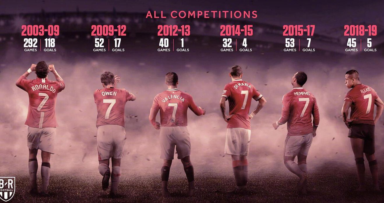 不可否认,7号拥有曼联的光荣传统,从国王坎通纳,到万人迷贝克汉姆,再到C罗,个个都在曼联创下不世出的功绩,但诡异的是,从C罗之后,7号似乎就成了巨星的负担。