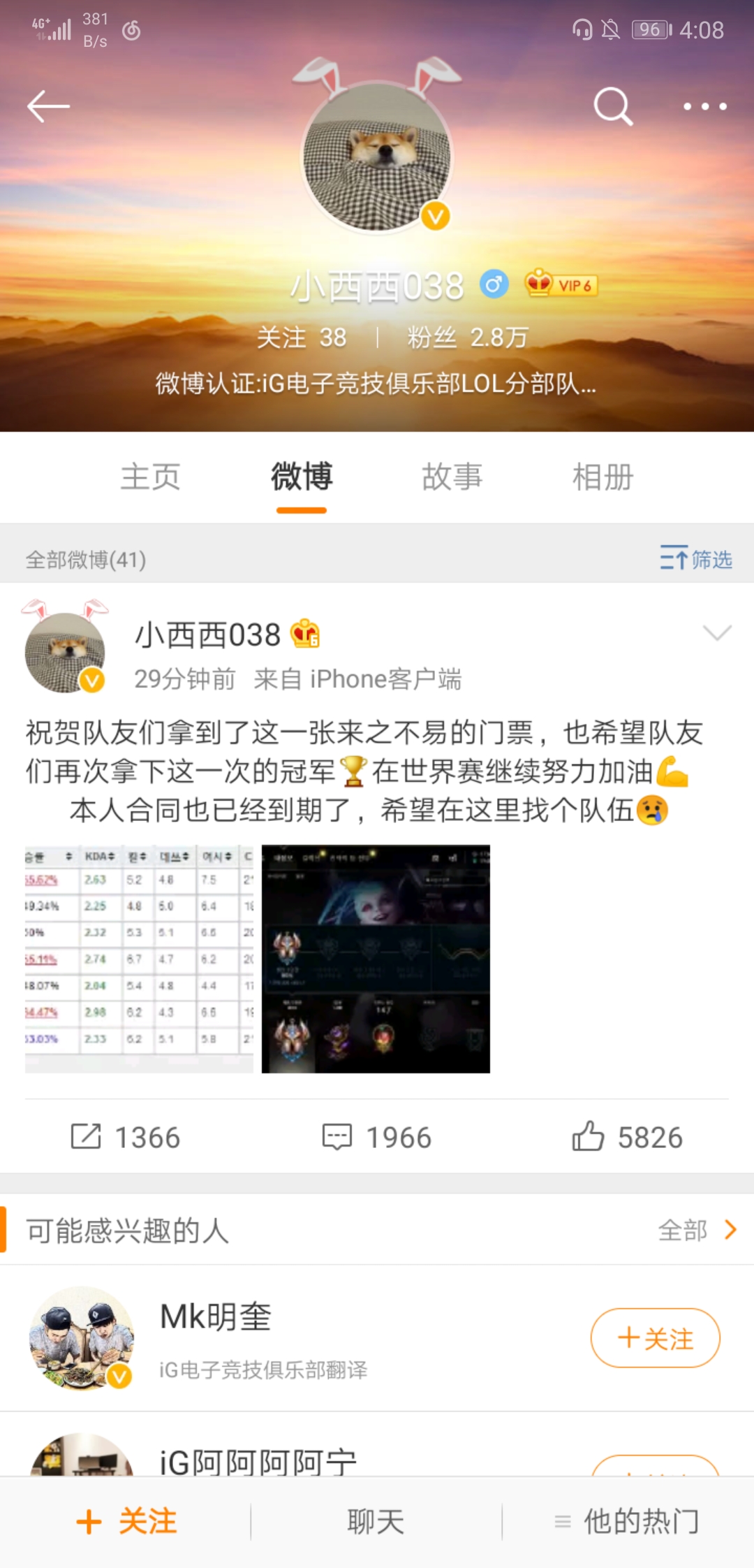 IG确定晋级总决赛,之前有传闻这次世界赛可以带7人,而按照过往都是只能带6人,还有一名紧急替补,那IG现在确定the shy 和小乐言首发上野的情况下,替补该怎么选,冠军锦鲤duke和世界赛总决赛mvp宁王该选择谁?也许您还喜欢:世界杯直播 亚洲杯直播 欧洲杯直播 足球直播