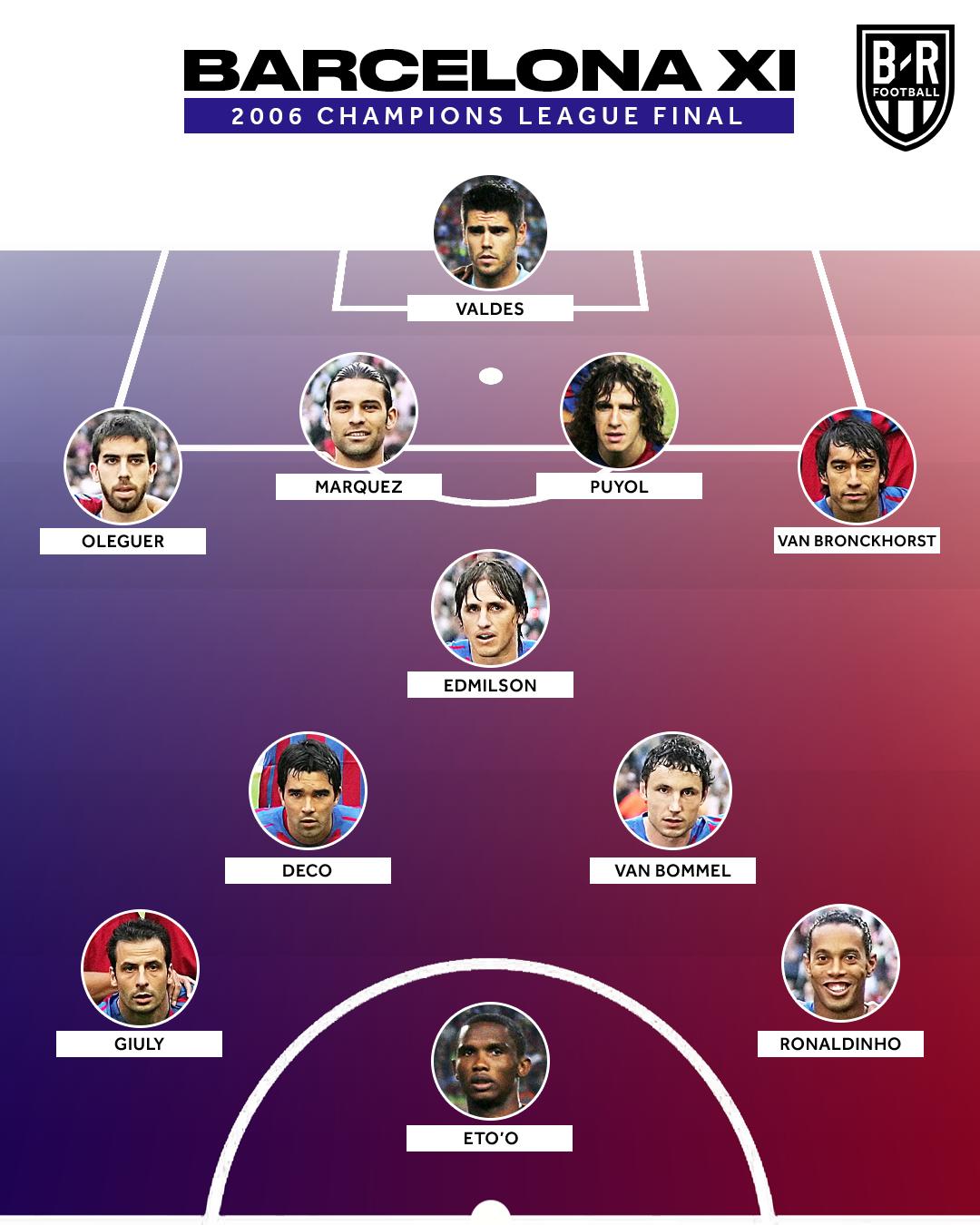 2006年阵容是巴尔德斯/奥莱格、马克思、普约尔、范布隆霍斯特/埃德米尔森/德科、范博梅尔/久利、埃托奥、罗纳尔迪尼奥。