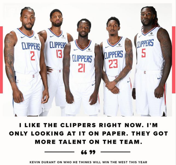杜兰特看好本赛季快船冲出西部,称赞卡哇伊无所不能!