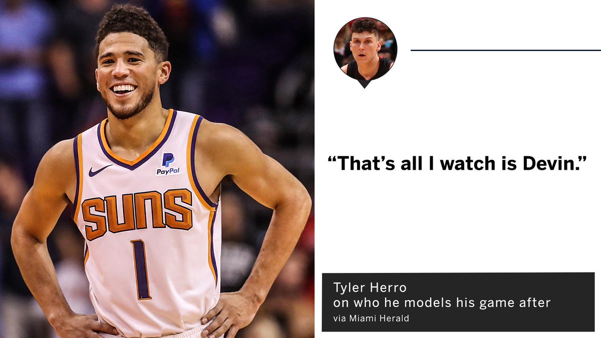 热火新秀希罗将同为13顺位被选中的得分后卫布克当成学习的对象。