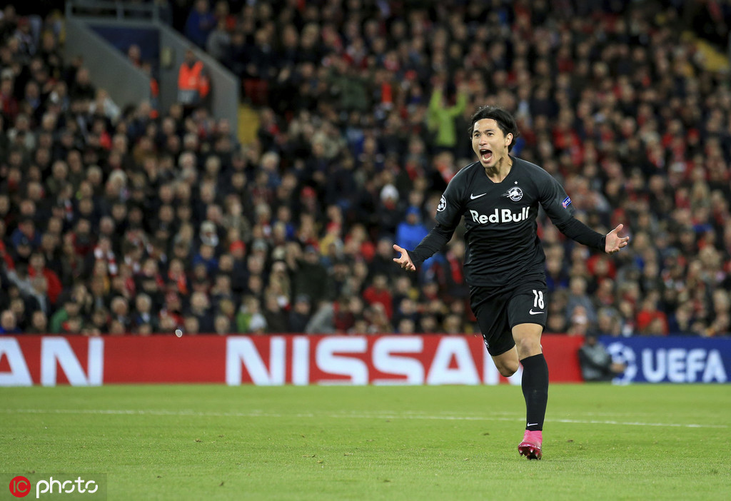 南野拓实对阵利物浦进球。