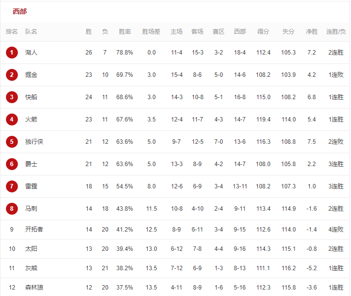 经历了两个月苦战,我们终于在开局阶段撑住了。我们距离西部第一的湖人差5个胜场,离西部第二的掘金和快船只差2个胜场。
