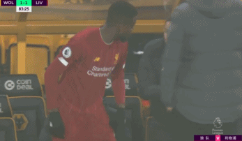 狼队vs利物浦的比赛第83分钟,场上比分仍旧是1-1。此时利物浦获得前场界外球,导播将镜头切给了替补席上准备登场的奥鲤吉。