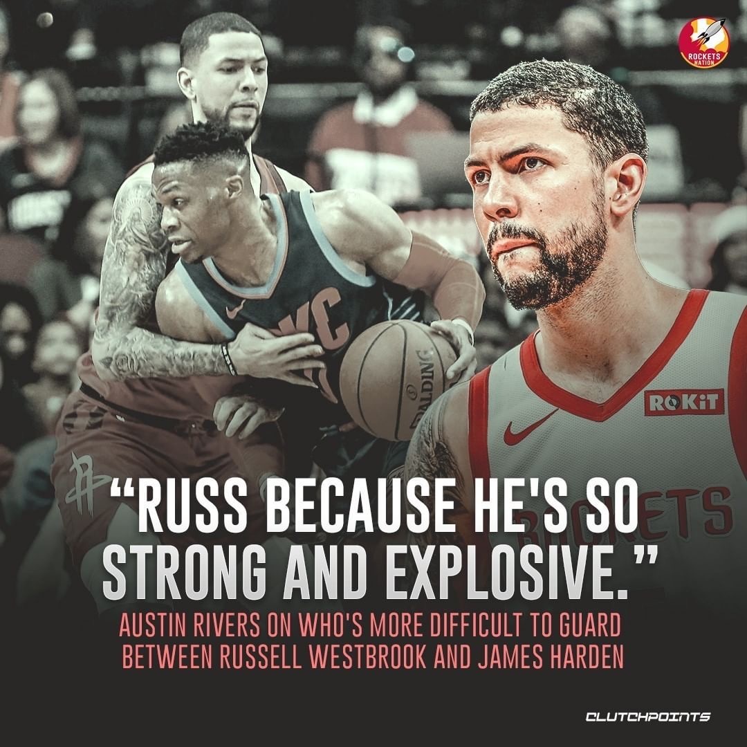——前天小里弗斯在直播中直言:威斯布鲁克是他职业生涯中遇到的最好的队友。昨天又有网友向他发出提问“哈登和威少哪个更难防?”小里弗斯不假思索地回答道:“是威少,因为他更强壮而且更有爆发力。”