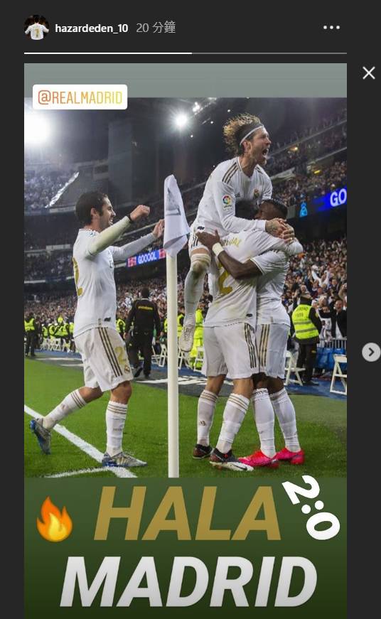 伤缺也不忘为队友送上精神支持,阿扎尔赛后动态:2:0!HALA MADRID[奋斗][奋斗]此前皇马宣布阿扎尔右脚腓骨骨裂。他不仅错过了本场国家德比,还将大概率缺席赛季余下的大部分比赛。阿斯报近日报道称,球员已接受手术,预计将缺席2-3个月。也许您还喜欢:世界杯直播 亚洲杯直播 欧洲杯直播 足球直播