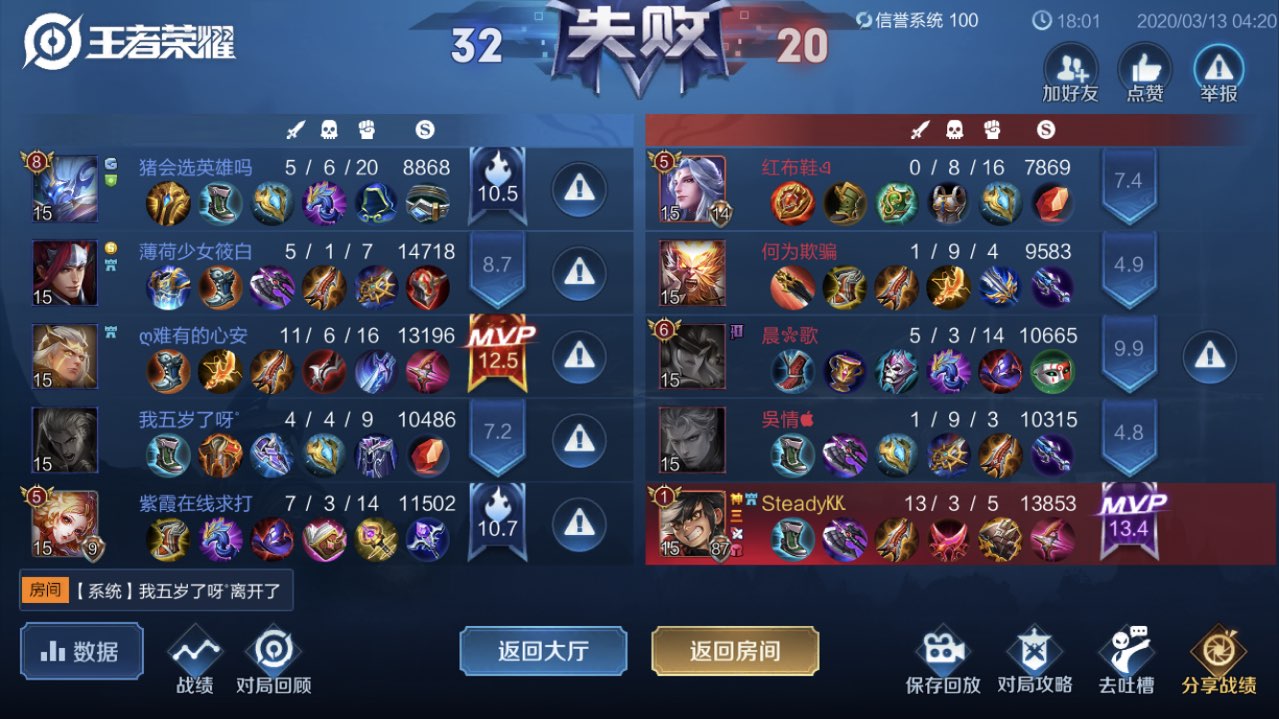 亲测,凌晨还是少打为妙。就这样从王者20星掉到了10星,有人带带我吗?可甜可盐[疑问]