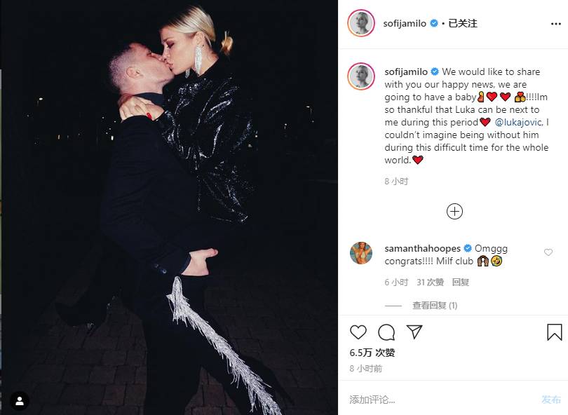 祝福!之前约维奇隔离期间仍外出去看女友,原来他的漂亮女友怀孕了[爱慕]约维奇近日因返回塞尔维亚后擅自外出引发了争议。今天,约维奇的女友索菲亚-米洛舍维奇通过社交媒体宣布了怀孕的好消息。索菲亚表达了迎来新生命的喜悦,也表达了对约维奇赶回国陪伴自己的感谢。“我们想与大家分享一个好消息,我们拥有了小宝宝,...也许您还喜欢:世界杯直播 亚洲杯直播 欧洲杯直播 足球直播