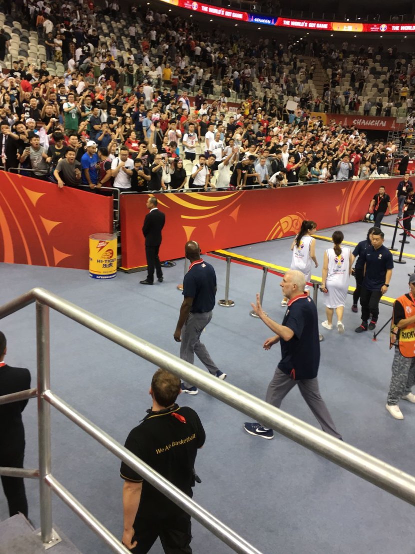 在2019年9月5日当天,我从郑州飞抵上海,当晚在东方体育中心观看了美国队和日本队的比赛,激动万分,心情澎湃。作为三十年的刺迷,也算是心愿达成。赛后老爷子挥手从我眼前走过,我微笑着和老爷子相互注视了短短几秒,过于激动未拍下这一瞬间,遗憾的还有当时并未携带马刺标志的周边产品。但也是难忘且珍贵的记忆。