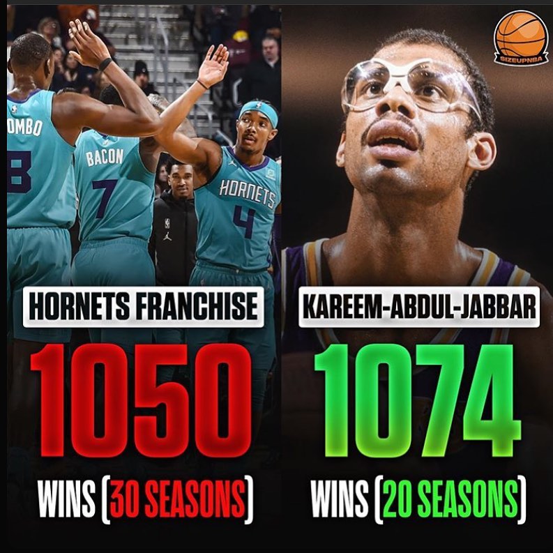值得一提的是,天勾贾巴尔职业生涯20年(1969年-1989年)赢的比赛比黄蜂队史30年更多。