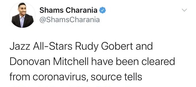 据名记Shams报道:消息人士透露,戈贝尔与米切尔已从新冠病毒中痊愈。