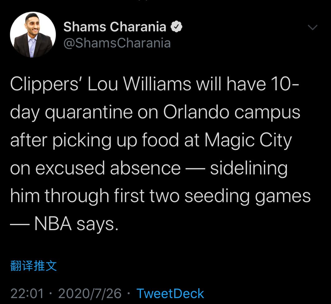 下一篇:路威将被隔离十天! 路威在回归复赛园区后将被隔离10天,他也将因此错过快船复赛后的前两场比赛,对手分