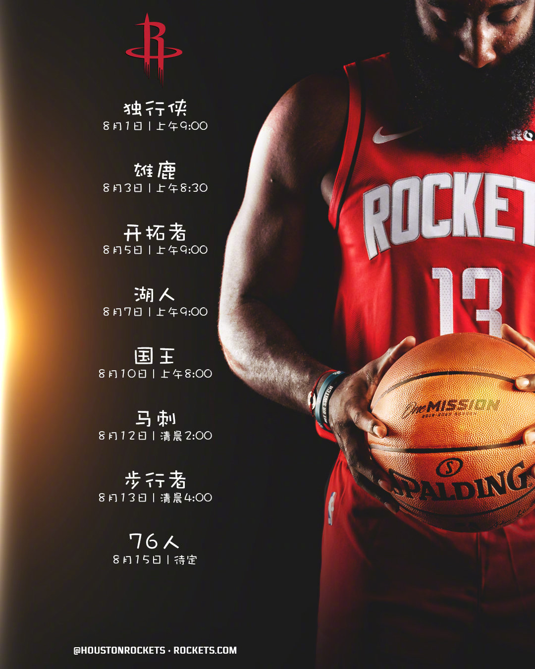 北京时间火箭正赛赛程?? 火密们小本本记好鸭??The Mission Continues...也许您还喜欢:世界杯直播 亚洲杯直播 欧洲杯直播 足球直播