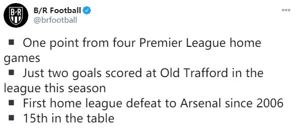 这是本赛季红魔的第四个主场比赛,前三场为1-3水晶宫、1-6热刺、0-0切尔西,仅获得1分!