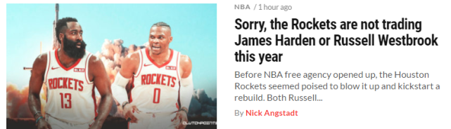 曝火箭休赛期并不想交易哈登威少!重建只是一个幌子?