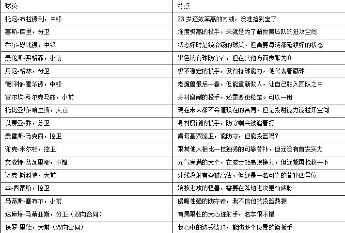 新任总裁已经上任工作了,这让他们失掉了一个2025年受到轻微保护的首轮签和2020年的两个次轮签,但76人成功地将他们的阵容变得比原来合理得多了,同时也将球队臃肿的工资结构变得更加灵活可操作了。
