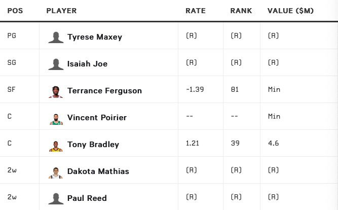 在首轮21顺位选中泰雷斯-马克西,次轮49顺位选中控卫以赛亚-乔,次轮58顺位选中保罗-里德。