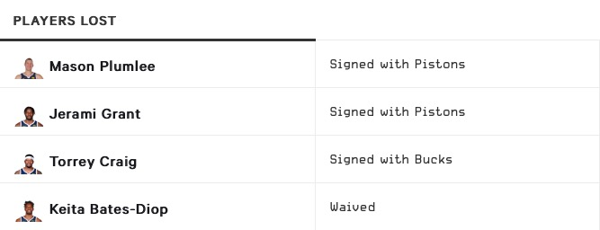 掘金为格兰特提供了一份与活塞相同的合同——3年6000万,但是格兰特选择了汽车城而不是里高城,理由是他将在底特律扮演更为重要的角色,消息人士告诉The Athletic。