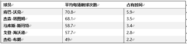 而波士顿在常规赛中对出手和球权的分配则更加平均: