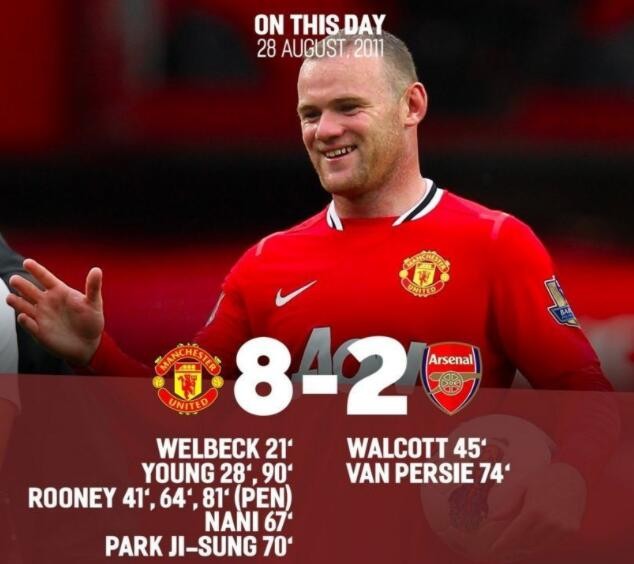上一次赢这么多,还是2011年8-2赢阿森纳(可怜的纳纳...)