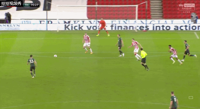 第54分钟,斯托克城右路攻势形成必杀!雅各布-布朗传中,汤普森包抄破门扳平比分,1-1。