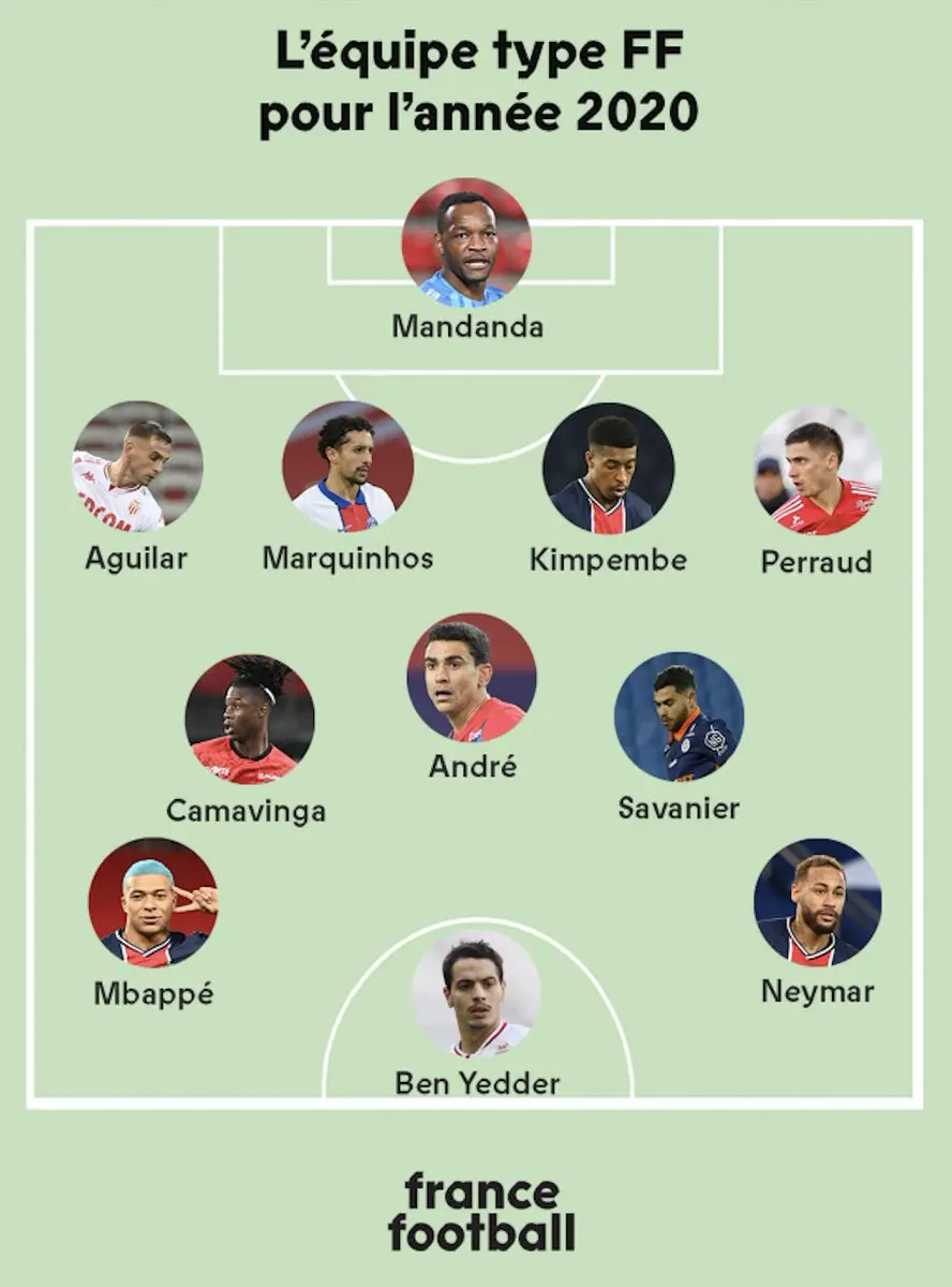 法国足球评选的2020年法甲最佳阵容出炉,巴黎三将内马尔、姆巴佩、马尔基尼奥斯悉数入选,而效力于雷恩俱乐部的18岁小将卡马文加也凭借着优异表现成功入围,各位还对哪些没有入选的球员印象深刻呢,欢迎在下面留言讨论!