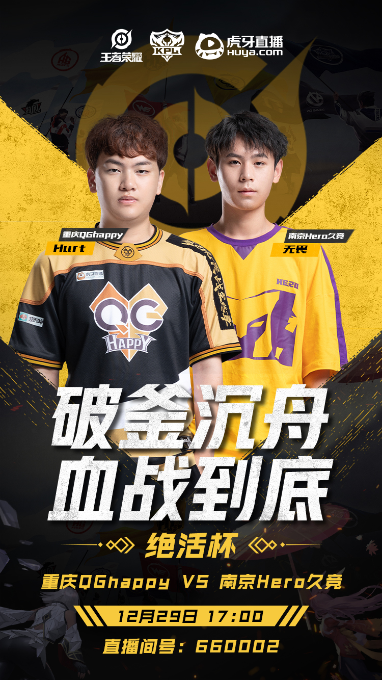今天17:00,重庆QGhappy?再次迎战南京Hero久竞!QG刺痛能否带领队伍成功“复仇”?Hero无畏能否守护队伍荣耀?巅峰大战,一触即发!虎牙绝活杯直播间:660002