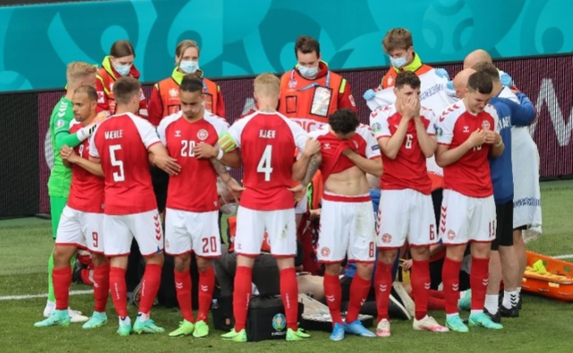 ?? ? ? 北京时间6月13日,欧洲杯B组丹麦对阵芬兰的比赛进行到第43分钟时,占据优势的丹麦队攻势迅猛。球队核心埃里克森正走到边线接应队友界外球,在无球员接触的情况下埃里克森突然倒地。此时,多名丹麦和芬兰球员迅速举手示意。看到场上情况后,当值主裁安东尼·泰勒迅速终止比赛,并示意救援进场。从埃里克森倒下,到比赛中止,用时3秒。