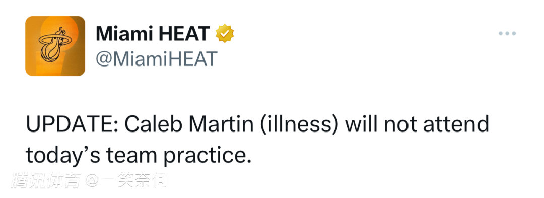 凯莱布·马丁因生病缺席了今日训练 马丁在打凯尔特人时发挥了重要的作用 希望马丁明天可以上场比赛也许您还喜欢:世界杯直播 亚洲杯直播 欧洲杯直播 足球直播