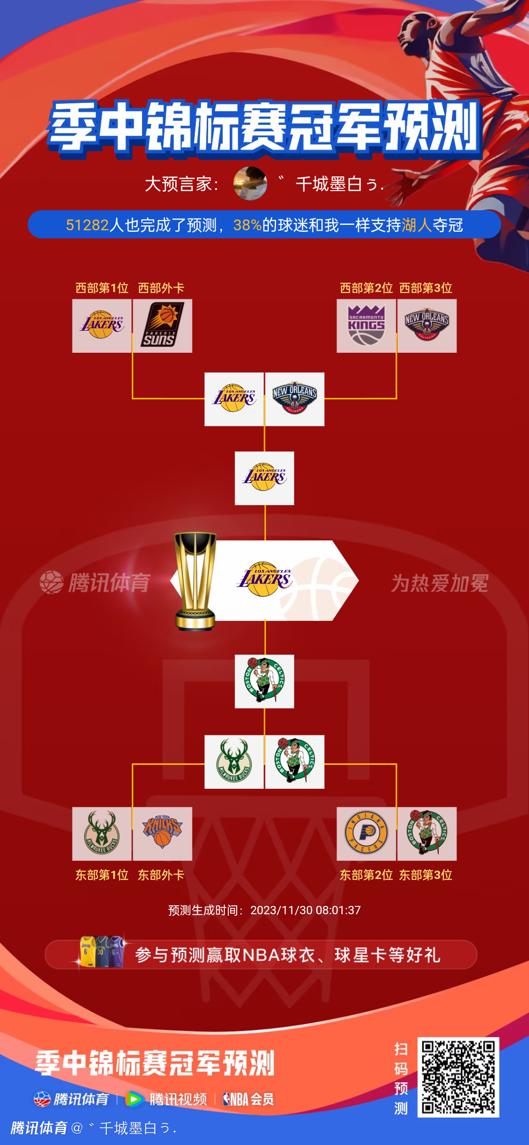 湖人加油#NBA季中锦标赛冠军预测#也许您还喜欢:世界杯直播 亚洲杯直播 欧洲杯直播 足球直播