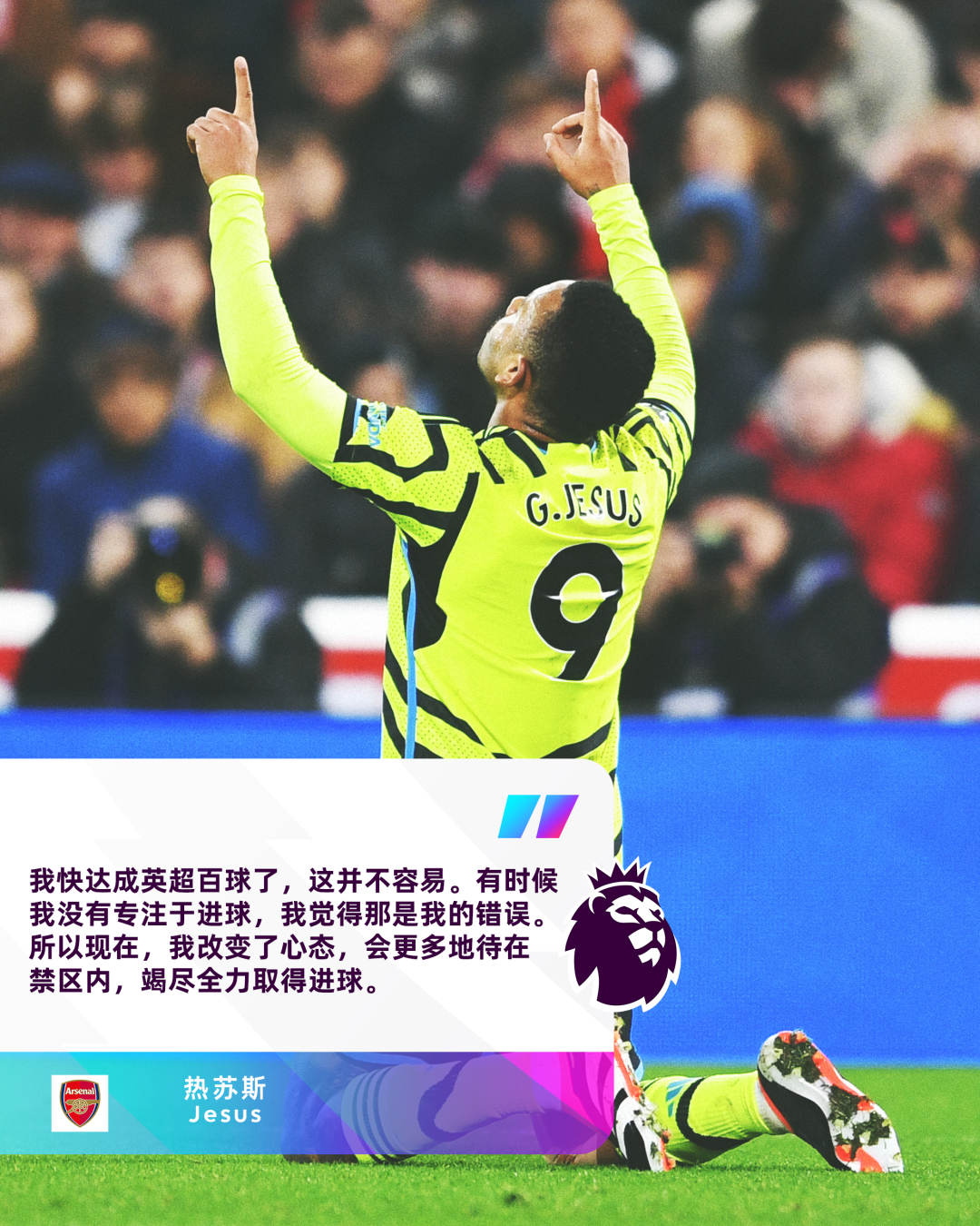 热苏斯:未专注于进球是我的错误,现在我会竭尽全力得分