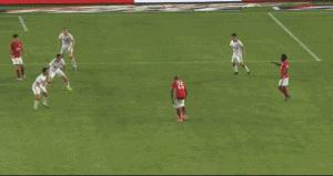 比赛第45分钟,姆比亚手术刀直塞,热鸟小角度打中边网。