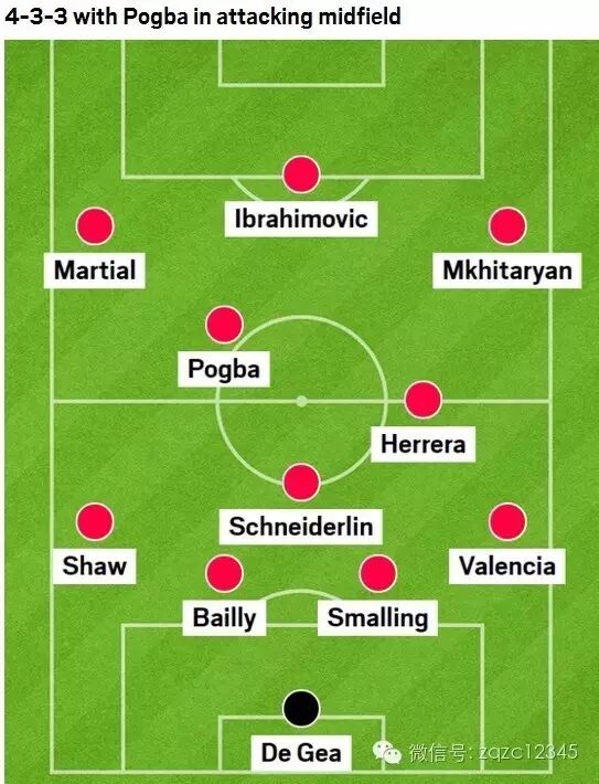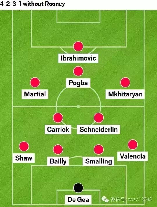 不过这也并非是穆里尼奥的唯一答案,倘若在用兵上,穆帅选择更大胆一些,那么曼联的选择就更多了,我们也不妨对此大胆猜测一下。442是另一个 选择,且相对稳妥和保守,穆里尼奥可以让鲁尼与伊布组成双中锋,其他位置不变。而如果穆帅大胆的拿下了鲁尼,那么球队可以在4231的阵型中,同时在后腰 位置排出卡里克和施奈德林,博格巴顶到10号位,充分发挥他的进攻才能。再大胆一些的话,穆帅还可以尝试433,后防线不动的情况下,中场摆出施奈德林、 埃雷拉和博格巴的组合,锋线则为马夏尔、伊布和姆希塔良,这或许可以最大限度的发挥球队的攻击力。
